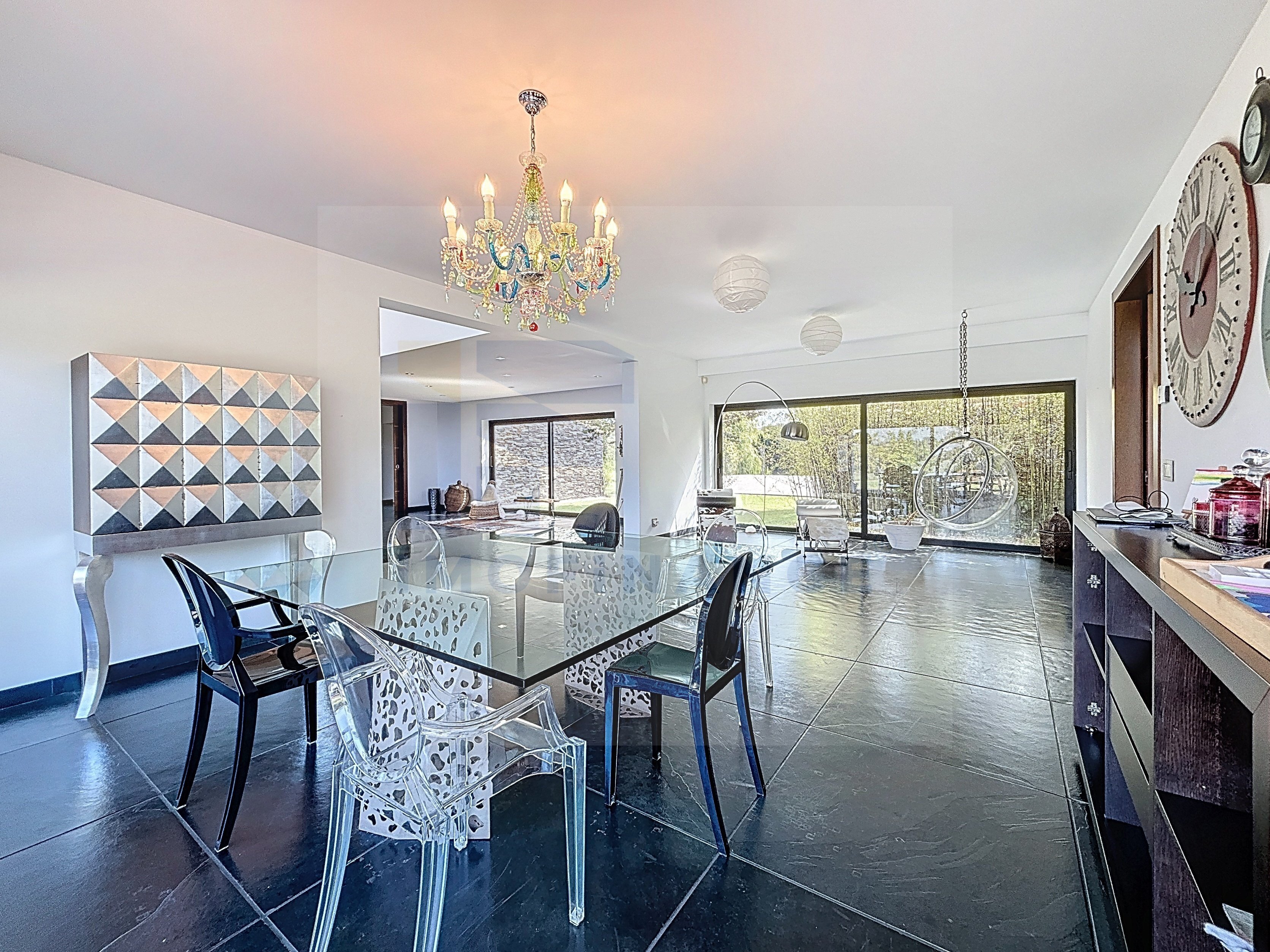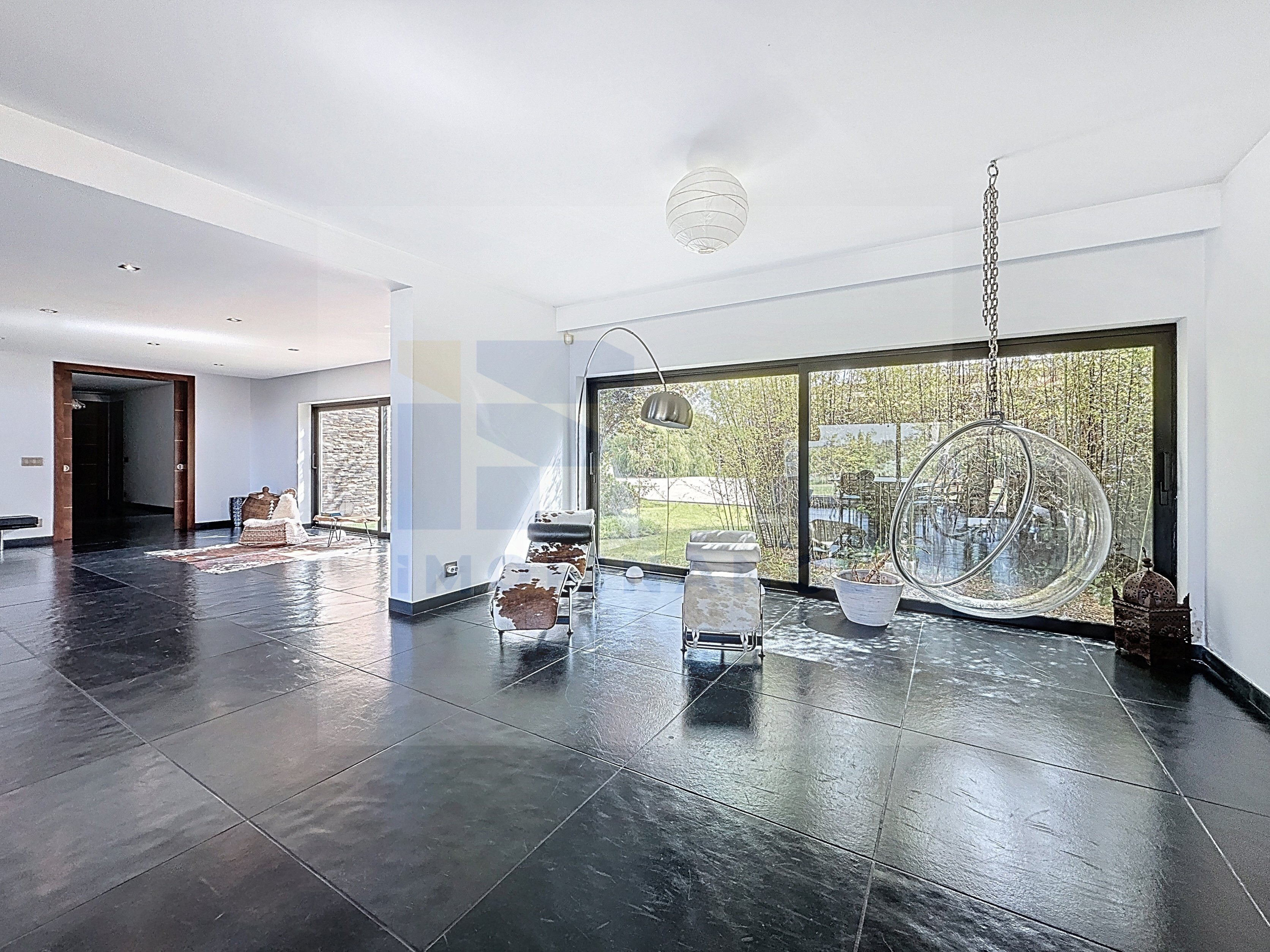 A residência, com 842 m² de construção, foi pensada ao detalhe para oferecer uma experiência única. São 7 quartos amplos, onde 6 são suites todas com closet e casa de banho privativa, incluindo uma suite principal de sonho, com vista para o jardim e lago, duche e uma impressionante banheira tipo piscina em xisto natural do Brasil. A imponente sala de estar de 111m² recebe luz natural abundante e oferece vistas panorâmicas sobre a paisagem envolvente, enquanto a cozinha moderna de 40m², equipada e funcional, acedida através de um hall com dois jardins de inverno e sala de jantar. A casa dispõe ainda de escritório/biblioteca, sala de cinema, ginásio para manter um estilo de vida saudável, adega exclusiva, lavandaria com logradouro privado e garagem para 4 viaturas.